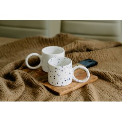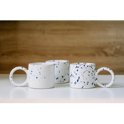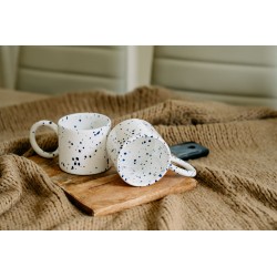 Kubek ceramiczny, biały matowy - Funny z błyszczącą dekoracją SPLASH w kolorze granatowym.