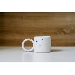 Kubek ceramiczny, biały błyszczący - Funny z błyszczącą dekoracją SPLASH w kolorze granatowym.