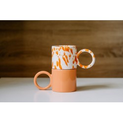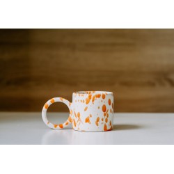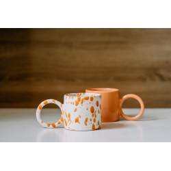 Kubek ceramiczny, biały matowy - Funny z błyszczącą dekoracją SPLASH w kolorze pomarańczowym.